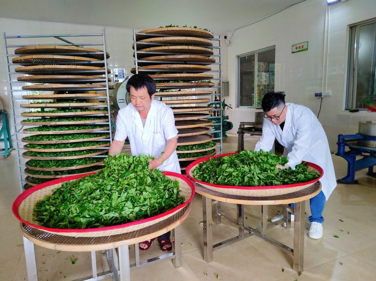 在海丰县西坑五指嶂茶业有限公司、海丰县莲花茶业有限公司等地的加工中心,记者看到,厂内工人忙碌、机器轰鸣,所有制茶设备开足马力生产,茶叶经过杀青、定型、烘干等工序后,被打包供应市场。