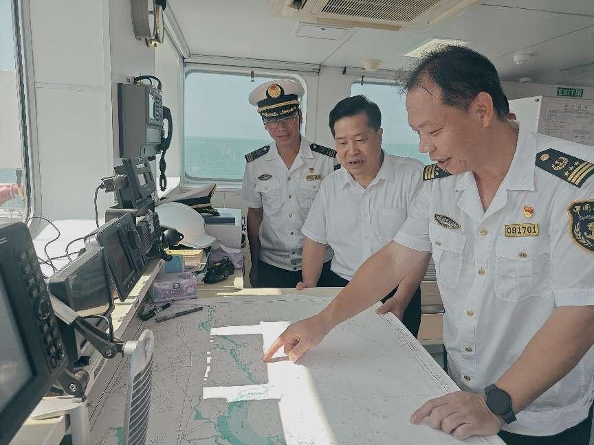 此次联合行动,由“海巡0941”“海巡09351”“中国渔政44067”“汕尾水警006”“粤标巡210”等执法船艇在汕尾港主航道水域组成联合巡航编队,对品清湖、汕尾港、江牡岛、汕尾港临时避风锚地、南北航线习惯航路、龟龄岛等重点水域开展现场巡航巡查,重点巡查水上碍航养殖、超航区航行、非法采砂运砂、海上倾废排污、扰乱海上通信秩序、非法载客等违法违章行为,巡检海上导航助航设施,进行通航安全隐患排查,全面开展反偷渡反走私、“清港清湾”宣传教育,维护海域通航秩序安全畅通。期间,汕尾海事局、汕尾海警局及海洋综合执法支队等涉海部门开展商渔共治、打击水上违法行为等执法交流,强化信息共享和协同联动,促进监管模式和执法机制进一步提升。