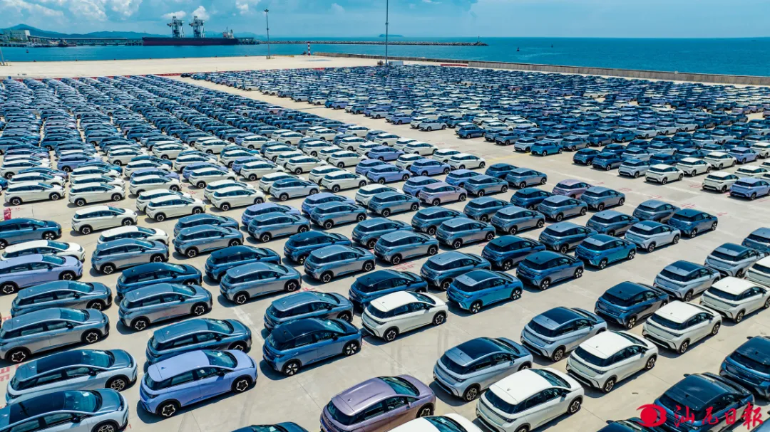 小漠国际物流港待出口的新能源汽车。