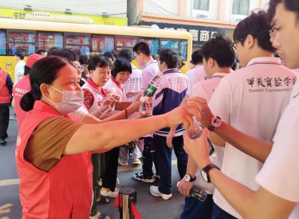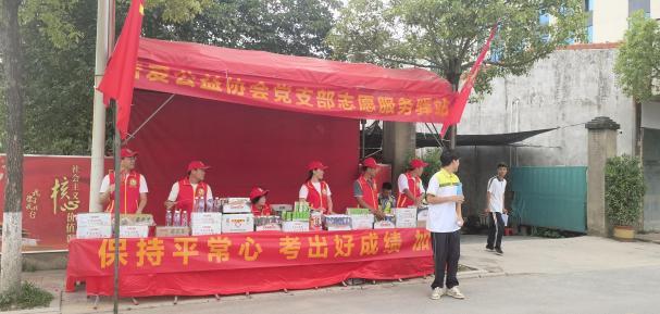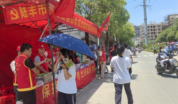 为助力莘莘学子安心应考,营造平安、有序、温馨的考试环境,中共陆丰市善爱公益协会支部委员会,在党员带领下高考期间出动志愿者超100人次,分组分时间段在碣石镇玉燕中学考点周边设立志愿服务驿站,为考生提供饮料、遮阳伞、考试文具等物资,并协助维持交通秩序、接送有需要的考生往返考场。