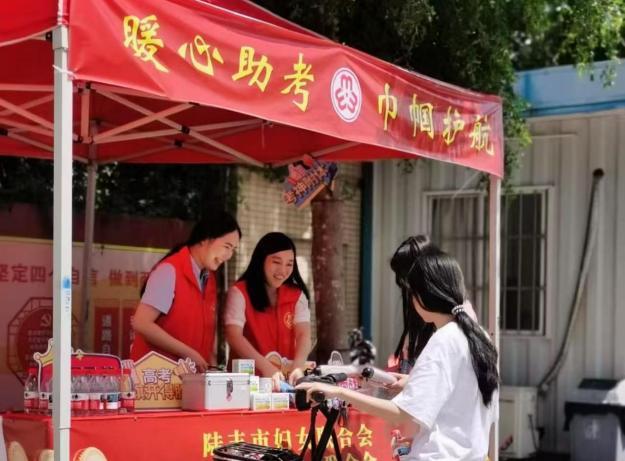 6月7日,市妇联联合田雨环境科技(陆丰)有限公司在启恩中学考点开展“暖心助考·巾帼护航”志愿服务活动,为高考学子加油助力。活动现场,志愿者们提早来到志愿服务点,将矿泉水、雨伞、小扇子、防暑药品以及包含标签字笔、铅笔、橡皮、尺子等在内的应急文具包整齐摆放,以备不时之需。 志愿者们用自己的真诚服务为考生加油打气,以一瓶水、一个微笑、一份祝福,为考生及家长送去浓浓关怀。现场还准备了“高考加油”、“旗开得胜”等暖心鼓励标语,为奔赴考场的学子们增添一份无声的祝福。
