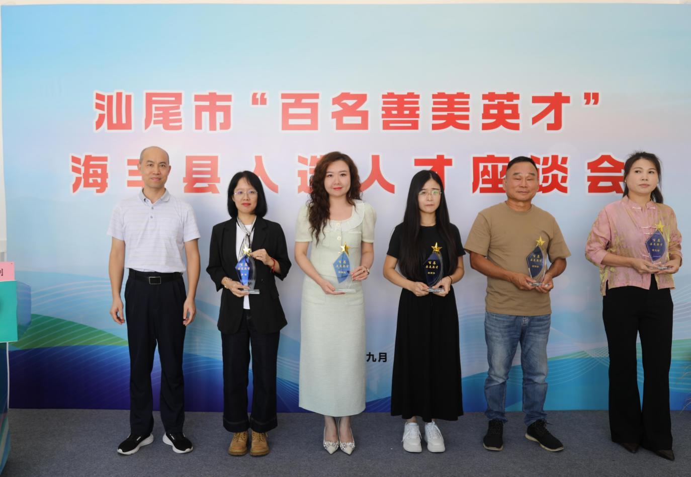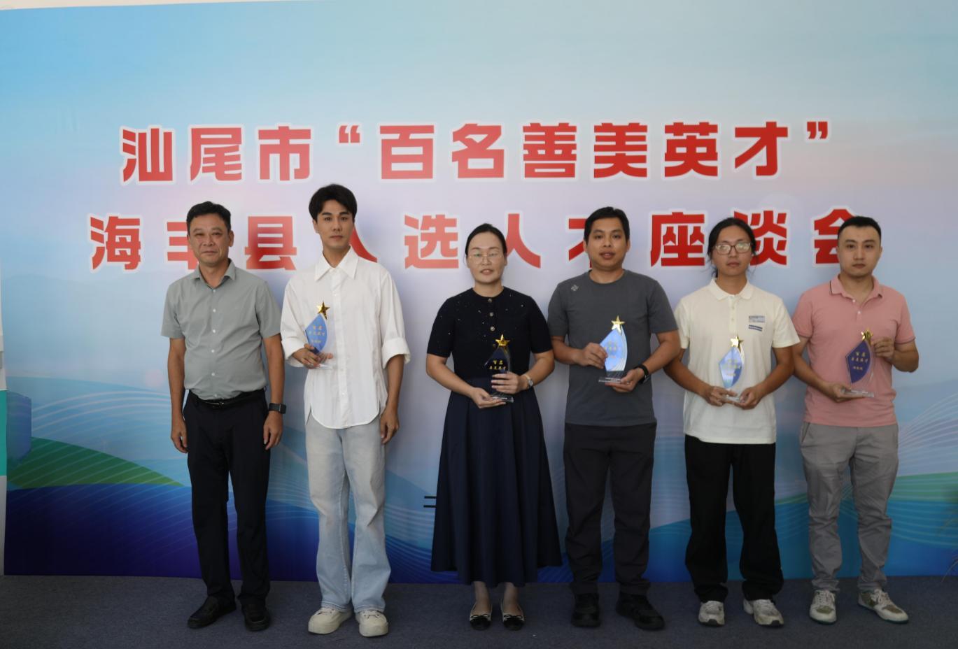 座谈开始前,各单位相关负责人首先为18名海丰县入选“百名善美英才”的人才代表颁发荣誉奖杯。熠熠生辉的奖杯,不仅是对各位英才专业成就和突出贡献的高度认可,更是对广大人才扎根海丰、服务海丰的诚挚感谢和殷切期望。